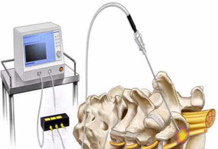 Radiofrequency Nerve Ablation is a minimally invasive procedure performed under live X-Ray guidance to treat back and neck pain by using precisely controlled heat to temporarily and selectively disable nerves responsible for pain. The procedure involves inserting a specialized needle with a heated tip near the problematic nerve, where the heat interrupts the nerve's ability to send pain signals.